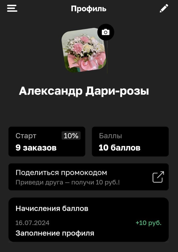 Заполняйте профиль и получайте 10 рублей, приглашайте друзей и получайте 10 рублей за каждого друга (обязательно ввести промокод друга). Оплачивайте заказ до 10% баллами.