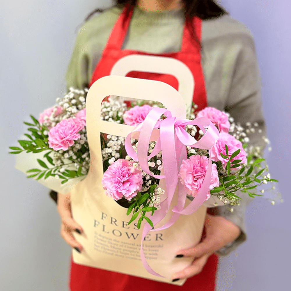 Состав: диантус - 9 шт, гипсофила - 2 шт, писташ - 2 шт, оформление (Голландия)