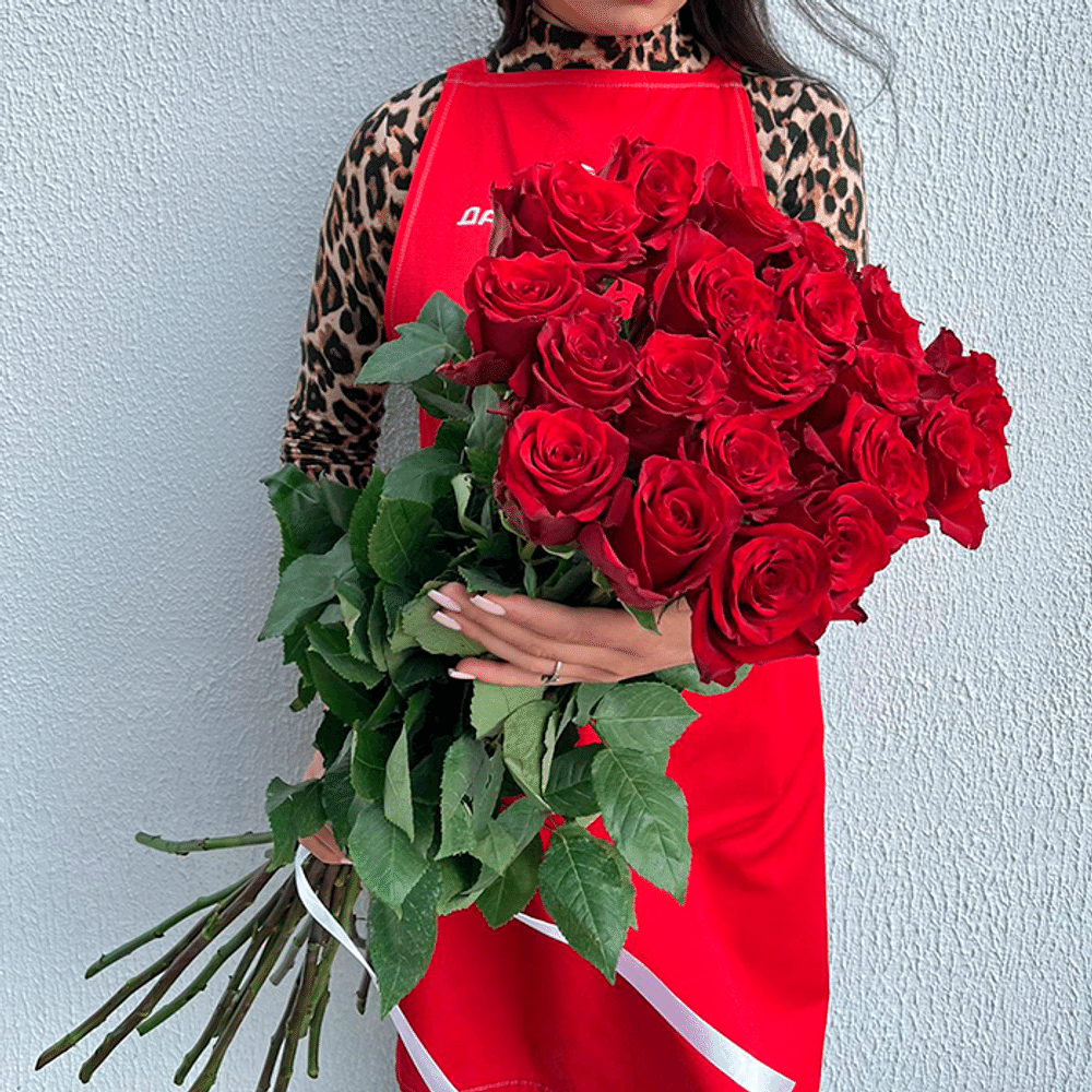 Состав: 21 роза от 90 до 100 см, лента (Эквадор)