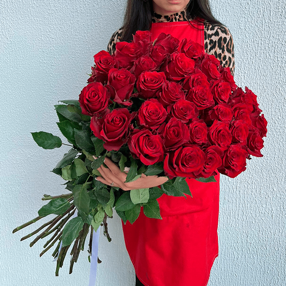 Состав: 35 роз от 90 до 100 см, лента (Эквадор)