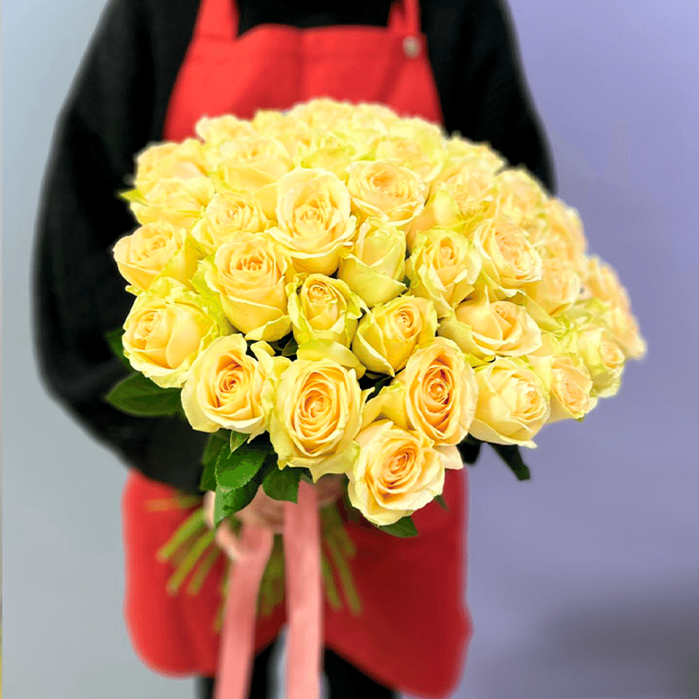 Состав: 51 роза до 40 см, лента (Беларусь)