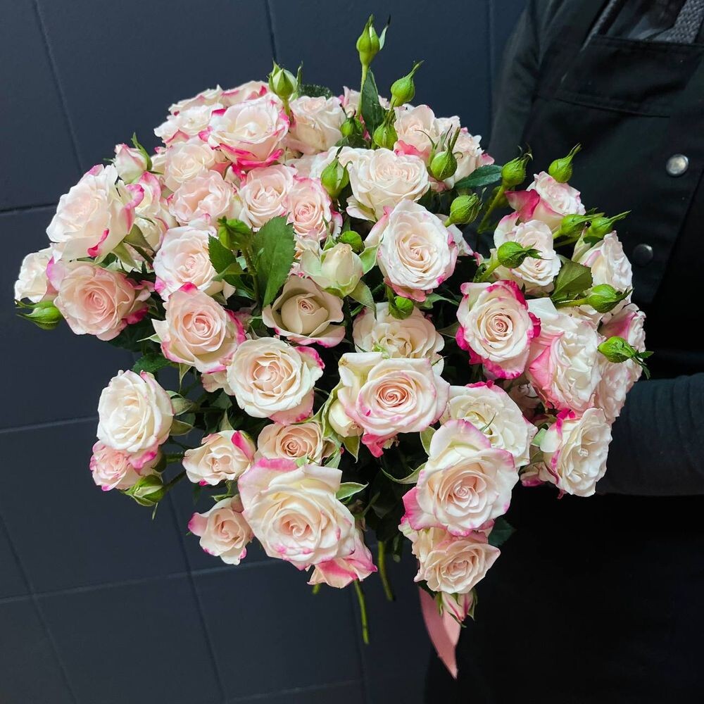15 куст. роз (бело-розовые) в пачке