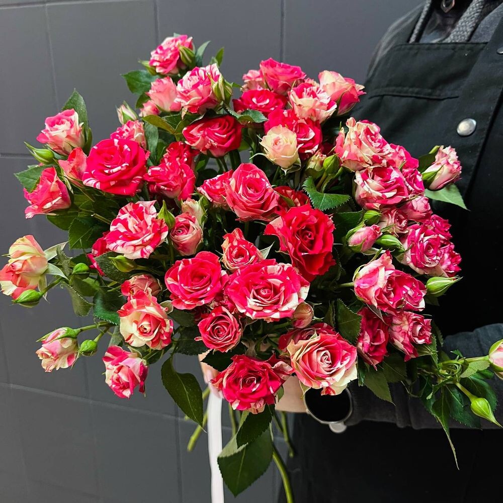 11 куст. роз (бело-красные) в пачке без оформления (Голландия)