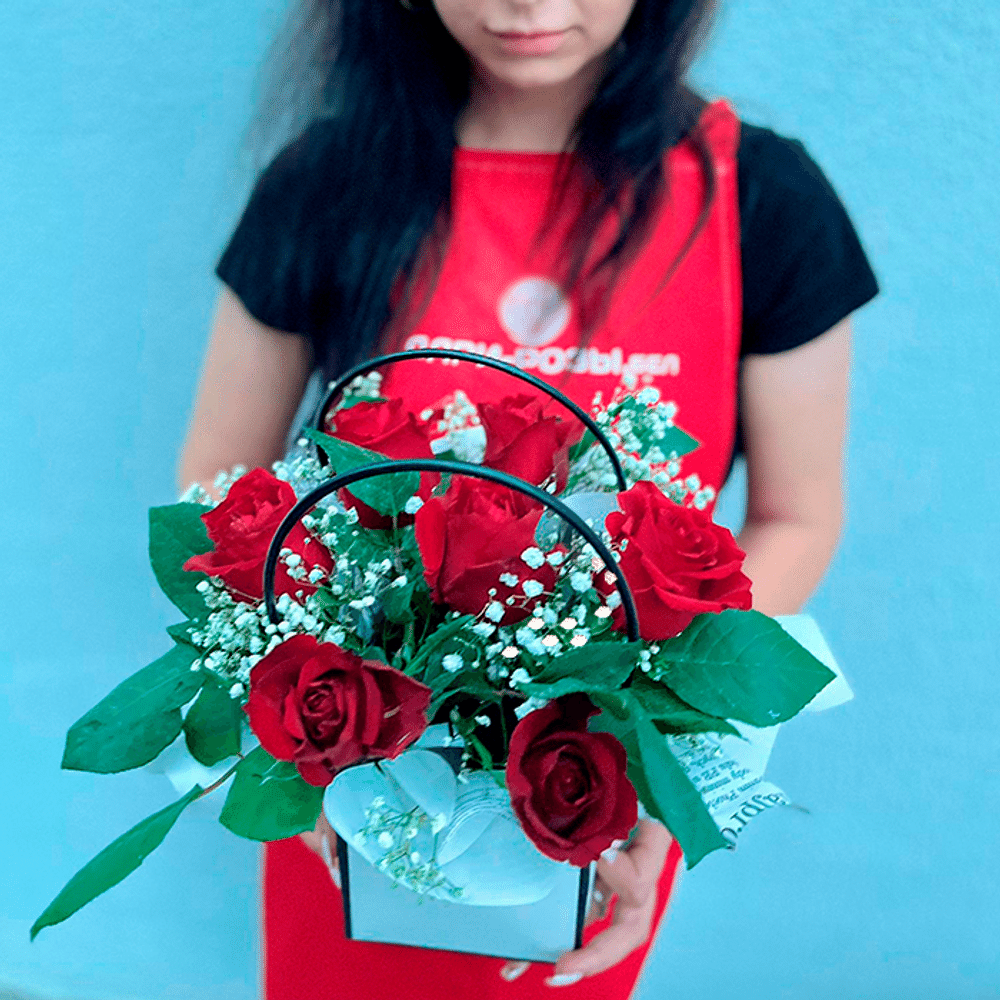 Состав: роза - 7 шт, гипсофила - 1 шт, оформление (Голландия)