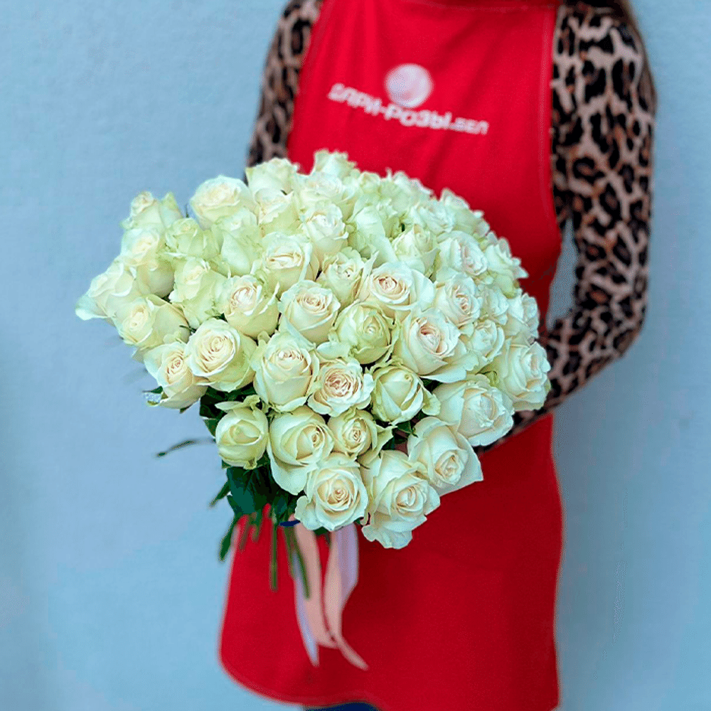 51 роза (Аваланш 40 см) с лентой