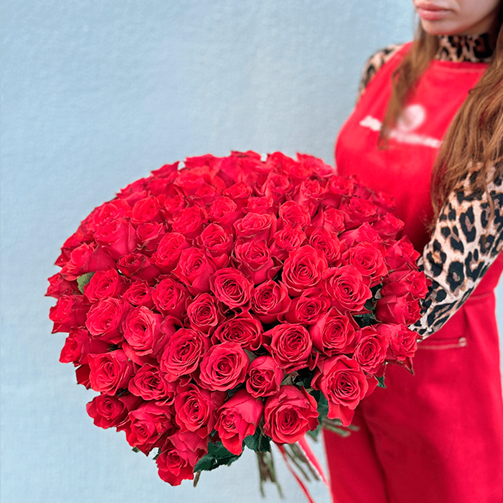 Состав: 101 роза до 40 см, лента (Голландия)
